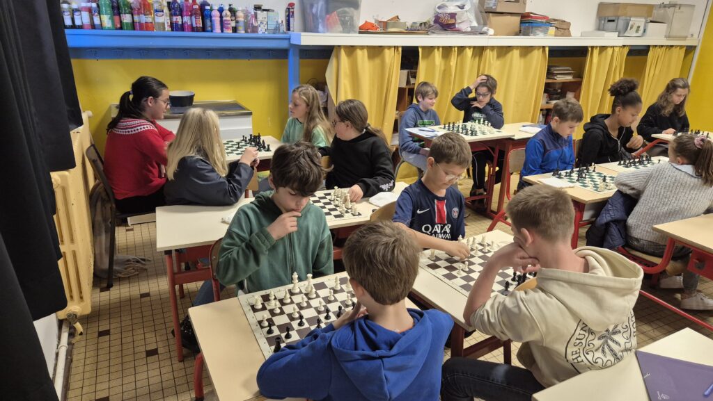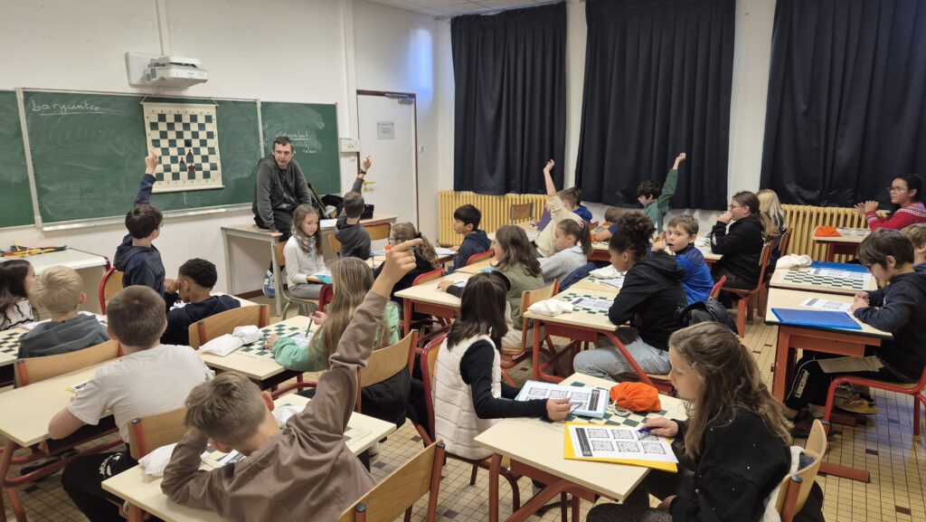Et c’est reparti pour apprendre en jouant ! Les élèves bénéficient, grâce à l’APEL, de 10 séances animées par Loïc afin d’apprendre les échecs, de se perfectionner dans ce jeu et d’approfondir leurs compétences stratégiques, la logique, l’anticipation tout en travaillant le repérage dans l’espace.