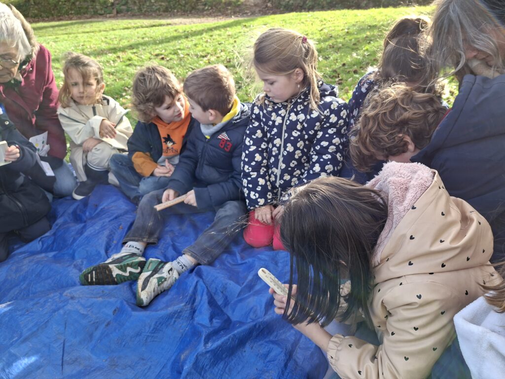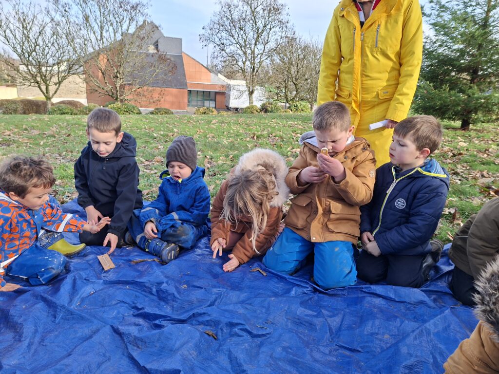 - chasse aux vers de terre: nous avons trouvé des vers de terre, mis dans un terrarium pour les étudier en classe. ILs étaient cachés dans la terre et sous la mousse. Facile à attraper avec toute la pluie qui était tombée.