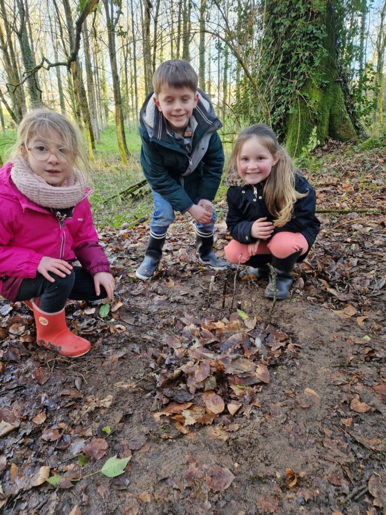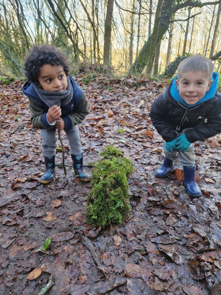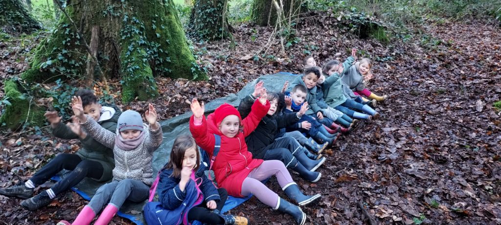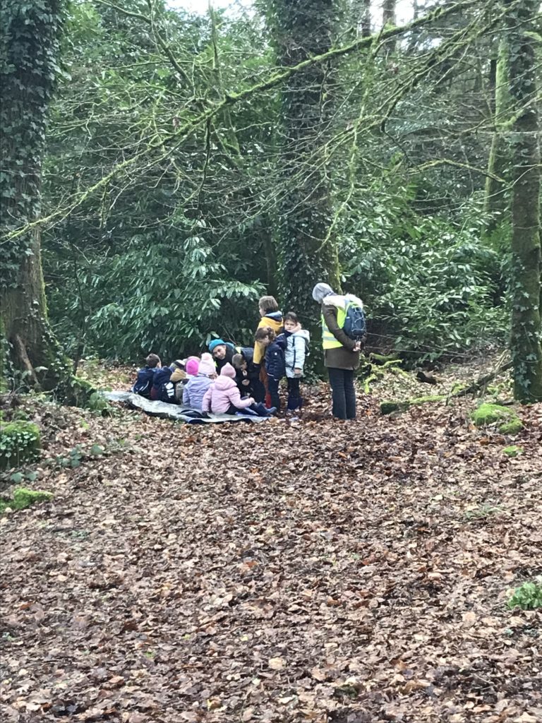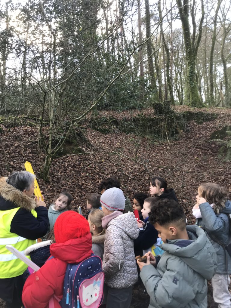 Jeudi 9 janvier, nous avons été nous promener en forêt, au parc de la Boissière à Elven, pour étudier la saison de l’hiver ! Après avoir avancé dans des chemins gadouilleux, nous avons navigué entre quatre ateliers :