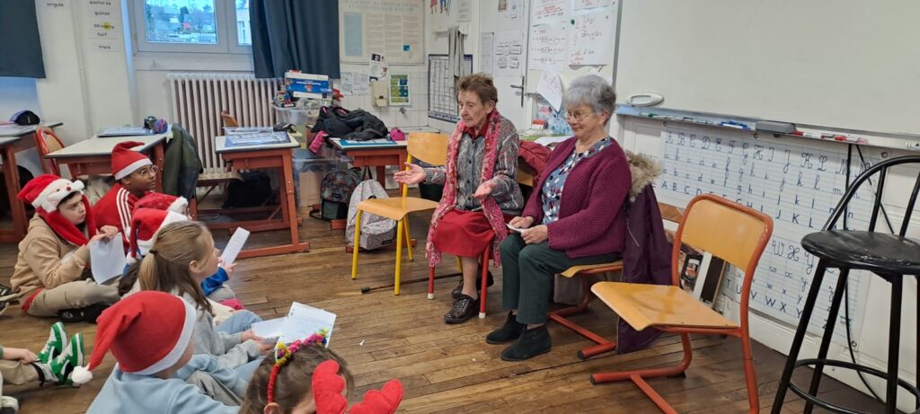 Un axe fort de notre année scolaire est le développement du lien inter-générationnel avec les aînés de la commune, en partenariat avec le CCAS et le club de l’âge d’or, mais aussi l’EHPAD La Chaumière.