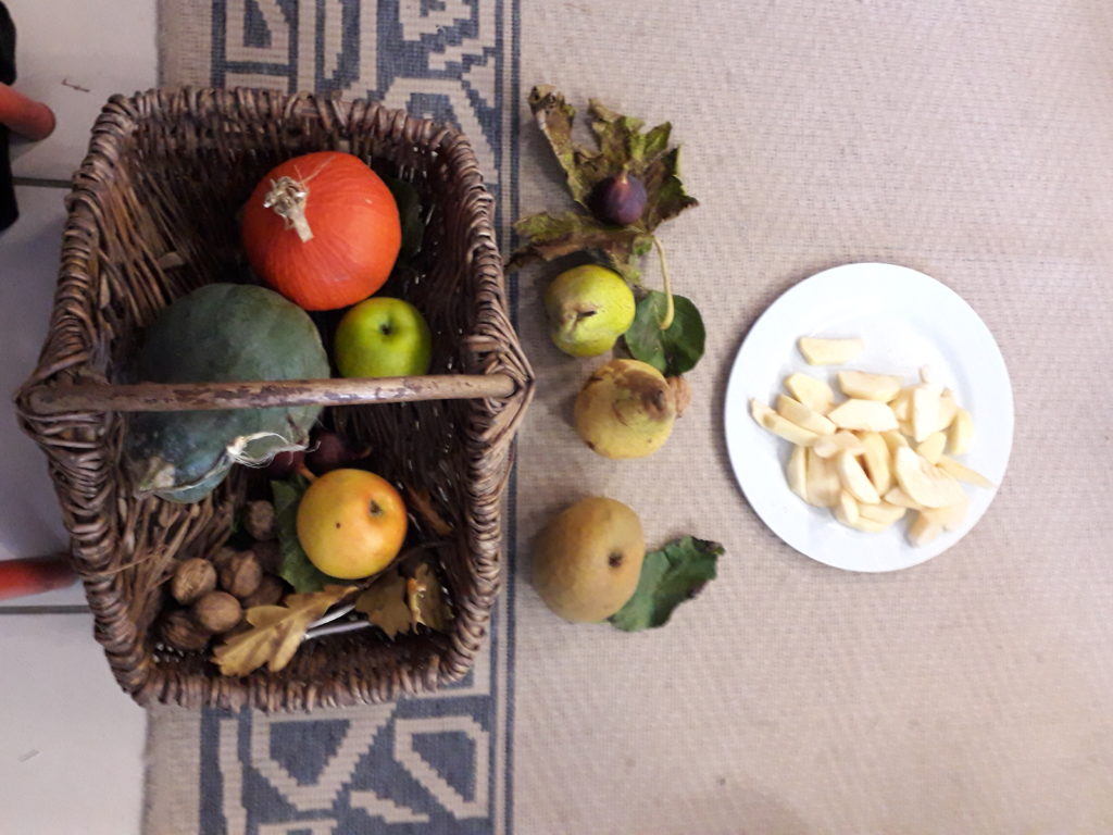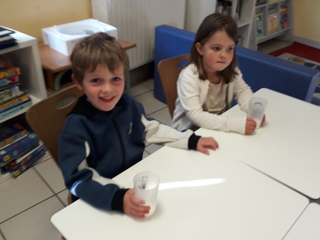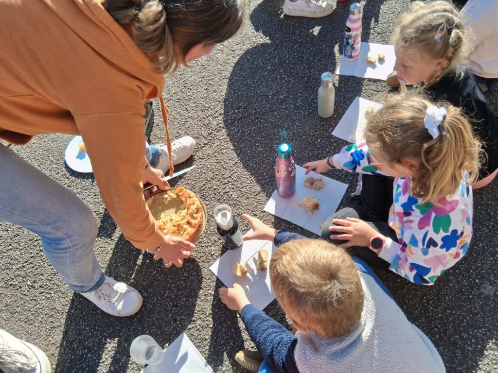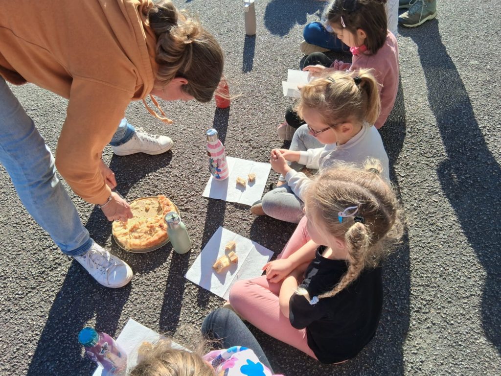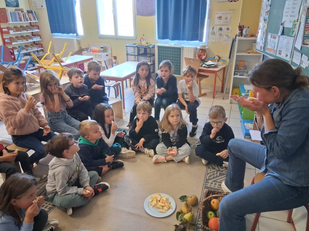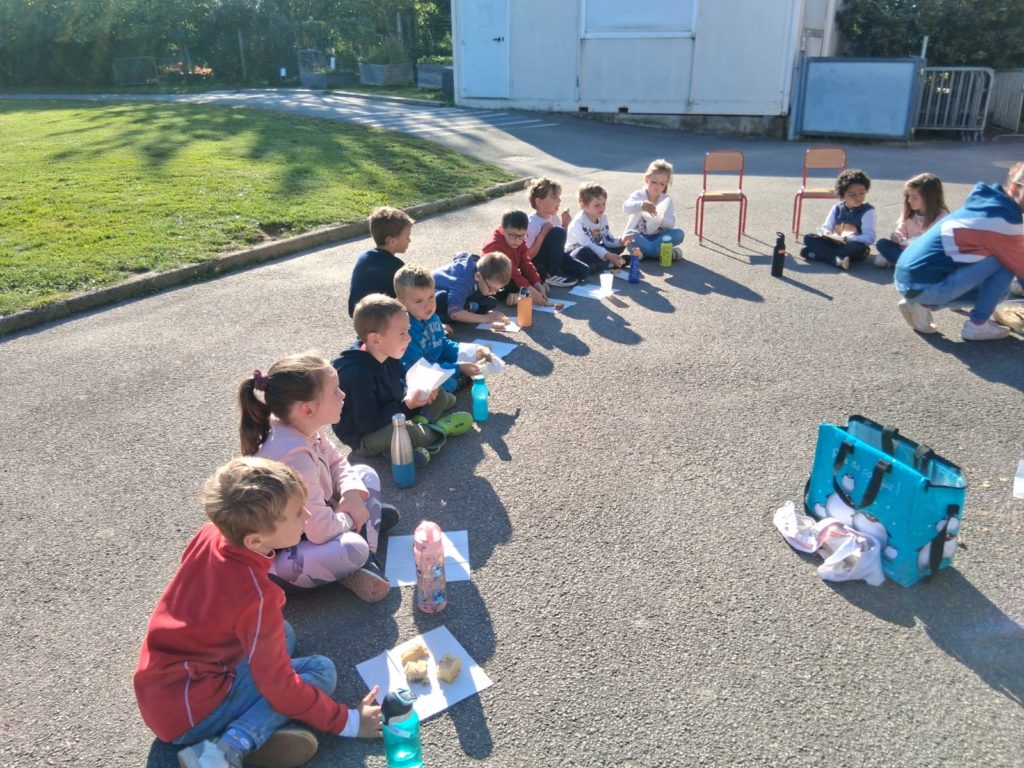 DU 13 AU 17 OCTOBRE, on a eu la chance de découvrir, et de déguster des aliments bretons: le lait, la pomme, la farine de sarrasin et le beurre bien sûr! Les enfants ont utilisé leurs 5 sens et leurs saveurs. Ils ont pris le temps de déguster, goûter en se concentrant sur ce qui se passe dans la bouche. On a découvert aussi qu’avec le lait on fait du beurre, des yaourts et des crèmes. Ils ont fabriqué du beurre avec la crème. Ils ont découvert la farine de sarrasin: elle est marron!! On a revu la pomme provenant du pommier. Avec ces bons ingrédients bretons, le jeudi 16 octobre , ils ont fait les petits cuistots avec leur tablier!! Ils ont réalisé 2 gâteaux: un cake à la pomme et aux galettes de sarrasin, et un far breton au sarrasin.