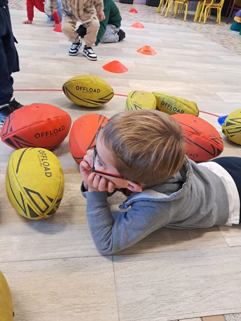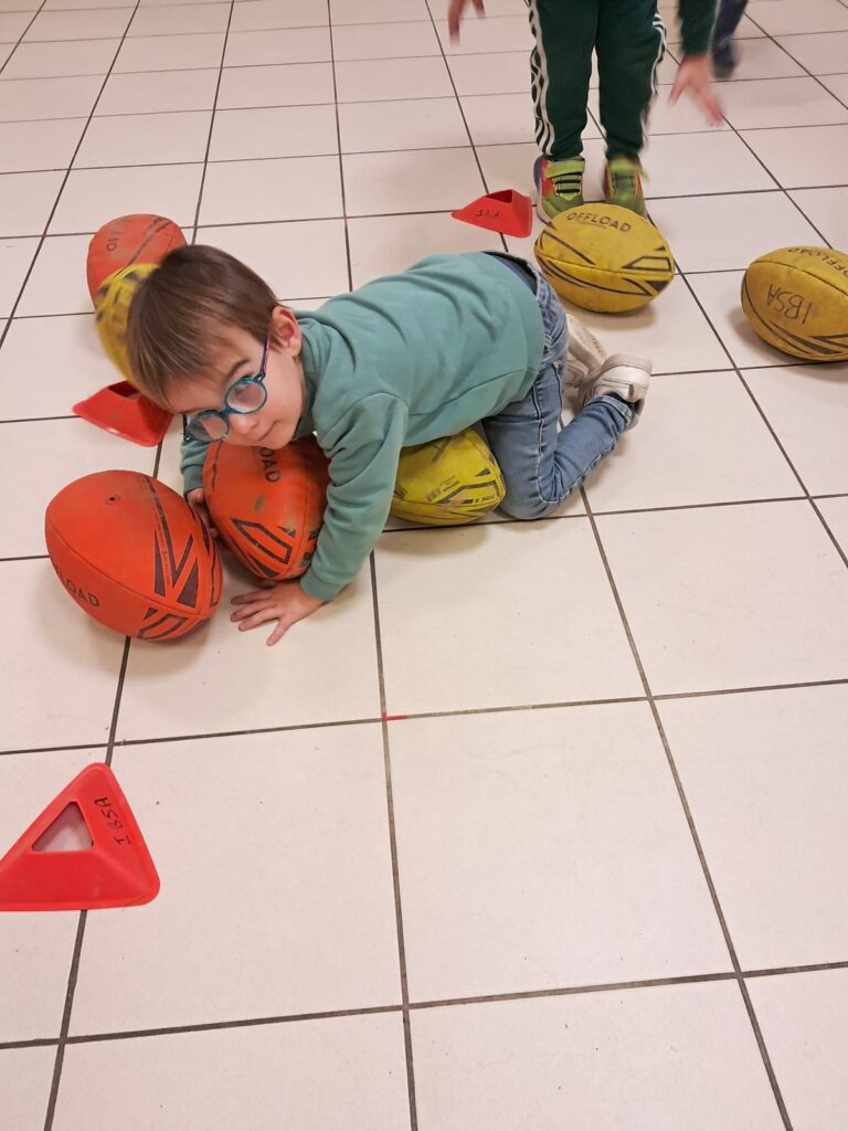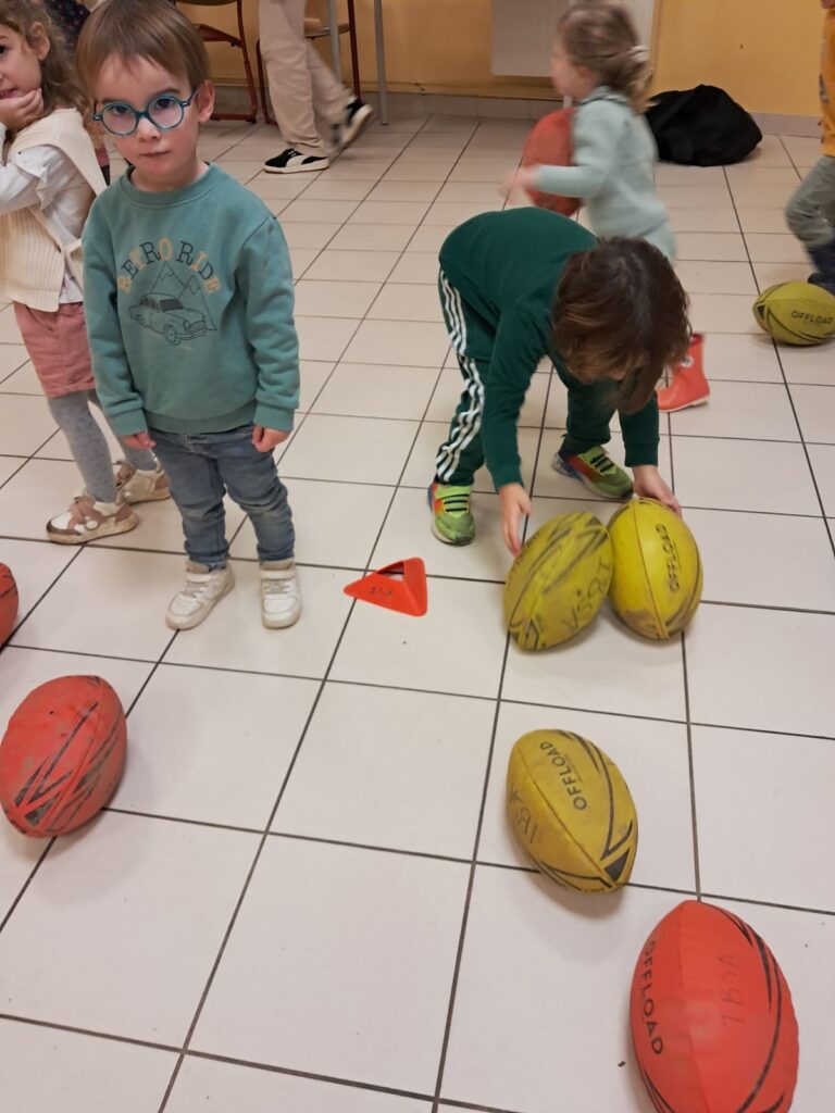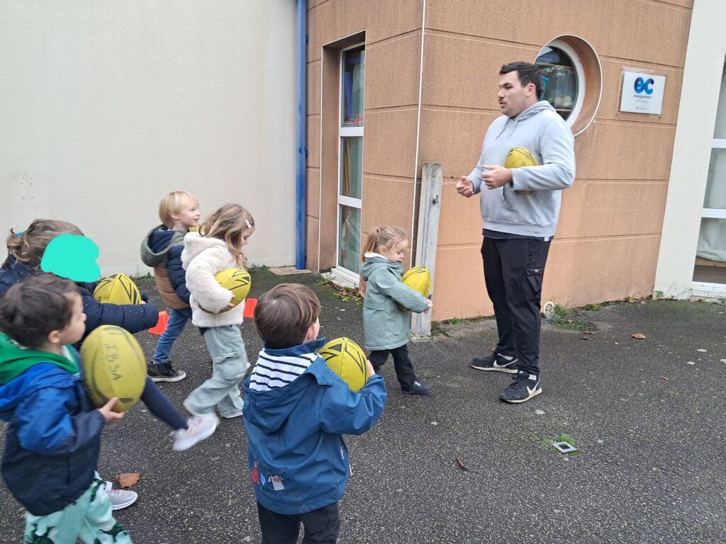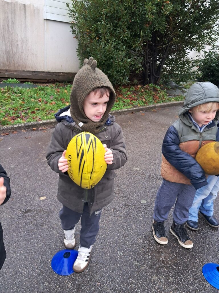 Tous les lundis de novembre et décembre, les élèves de TPS-PS-MS ont été initiés à des jeux de rugby préparés et encadrés par les jeunes en formation à l’IBSA. Chacun a évolué à son rythme, prit confiance et, surtout, beaucoup de plaisir, même quand les conditions météo n’étaient pas favorables !!