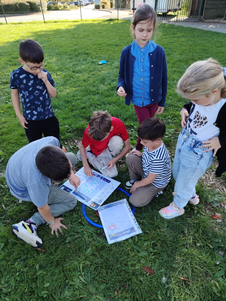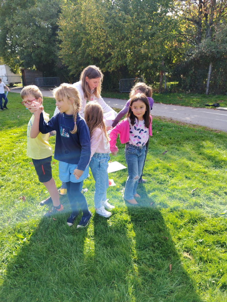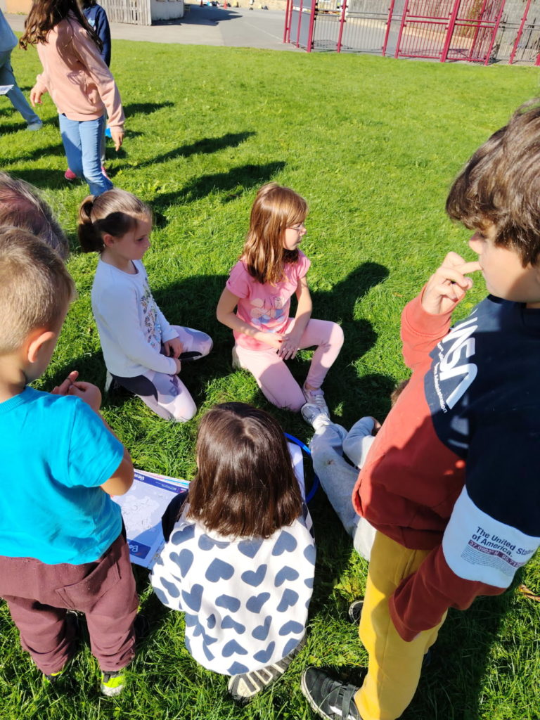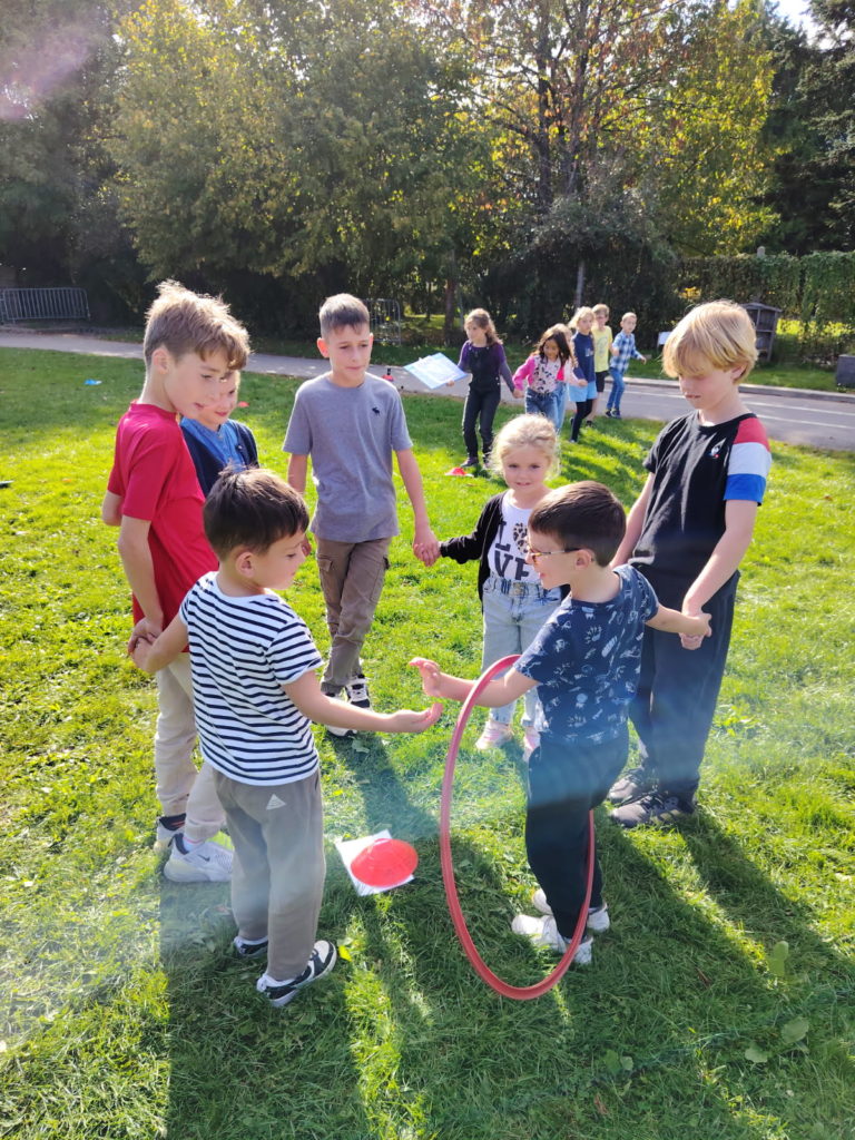 Le vendredi 19 septembre sous le soleil, on a lancé l’année sportive en participant à un jeu interclasses intitulé «Bouge avec les régions ! ». Les objectifs de cette proposition étaient de développer le vivre ensemble, de mieux se connaître, de coopérer, de faire équipe, et de partager un moment convivial. Notre classe en binôme avec les CM1 de Murielle s’est retrouvée dans la prairie pour partager ce temps sportif autour des régions françaises. Il fallait , par équipe de 8 élèves, faire une action comme » marcher en équilibre sur une corde » puis aller jusqu’au cerceau dans lequel se trouvait la région à découvrir avec sa spécialité culinaire. Le but du jeu: » être la première équipe à avoir retrouvé les 14 régions et reconstituer la France. » Un moment qui s’est prolongé le jeudi 16 octobre pour chanter tous les élèves de l’école ensemble, un chant qui nous accompagnera à toutes les périodes: « Bouge « de Zikobul!