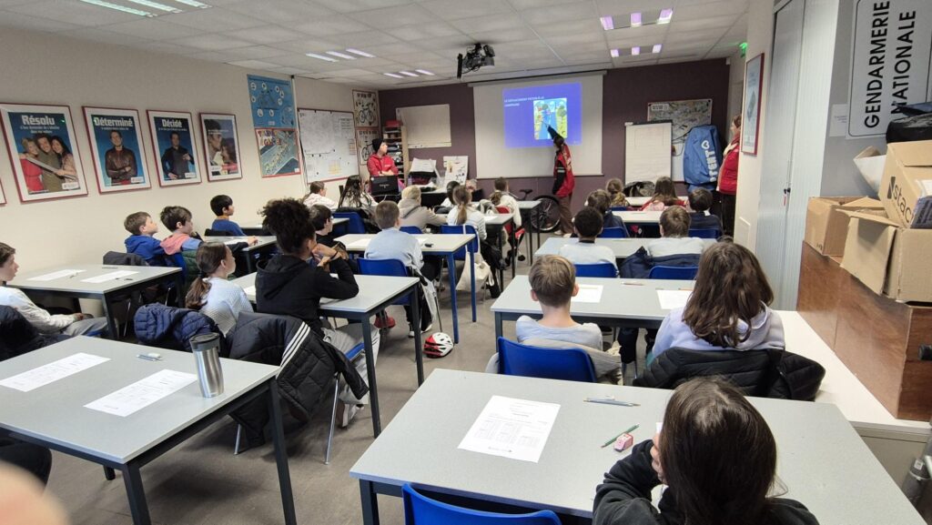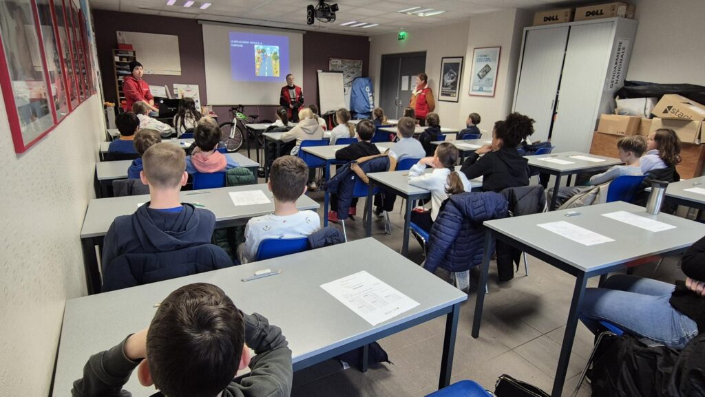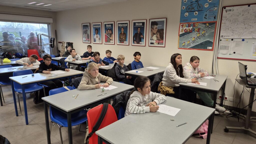Le vendredi 23 janvier, les élèves de la classe se sont déplacés à Vannes pour une formation sur le code de la route et un rappel des règles de sécurité sur la route. Ils ont pu circulé à vélo sur un circuit sécurisé en respectant la signalisation.